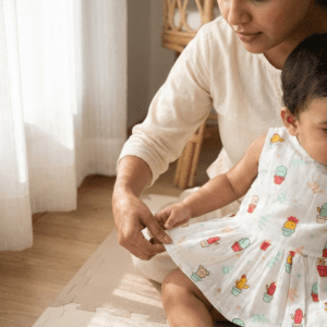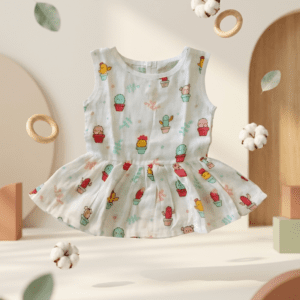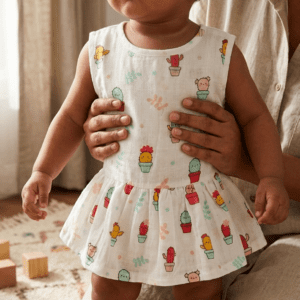 Give your baby gentle comfort with our Muslin Back Button Frock for Baby, crafted from premium 100% cotton muslin that is soft, breathable and lightweight on delicate skin. This baby muslin frock is ideal for hot and humid Indian weather and works perfectly as a summer baby dress for newborns and infants.
